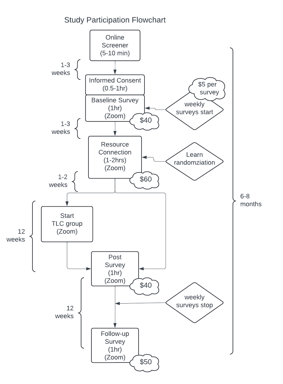 If selected, complete the TLC Program on Zoom: a peer-led, mutual-help group (2 hours, weekly, 12 weeks; only half of participants will be selected for the TLC Program). TLC Program sessions will be audio recorded for quality purposes and deleted at the end of the study.
